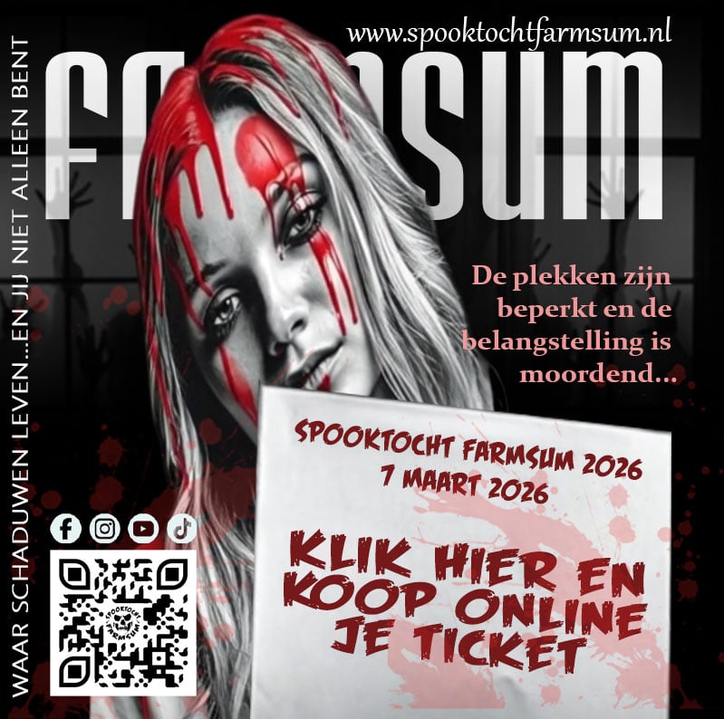 Volg ons op Facebook en andere sociale media voor alle ins & outs rondom de Spooktocht Farmsum 2026.